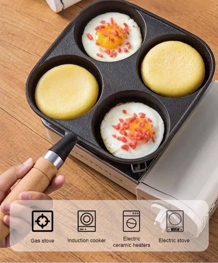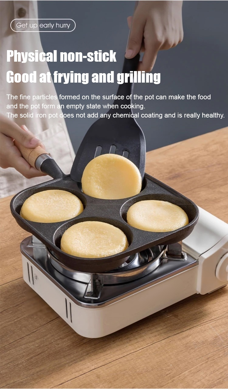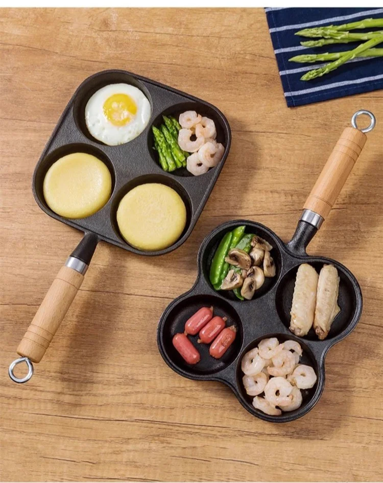 Deeper four-hole cast iron non-stick frying pan